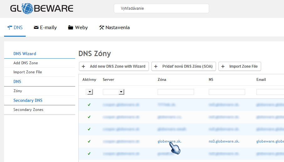 Majte prosím na pamäti, že nesprávnou manipuláciou v nastavení DNS môžeťe znefunkčniť Vašu webstránku alebo maily.